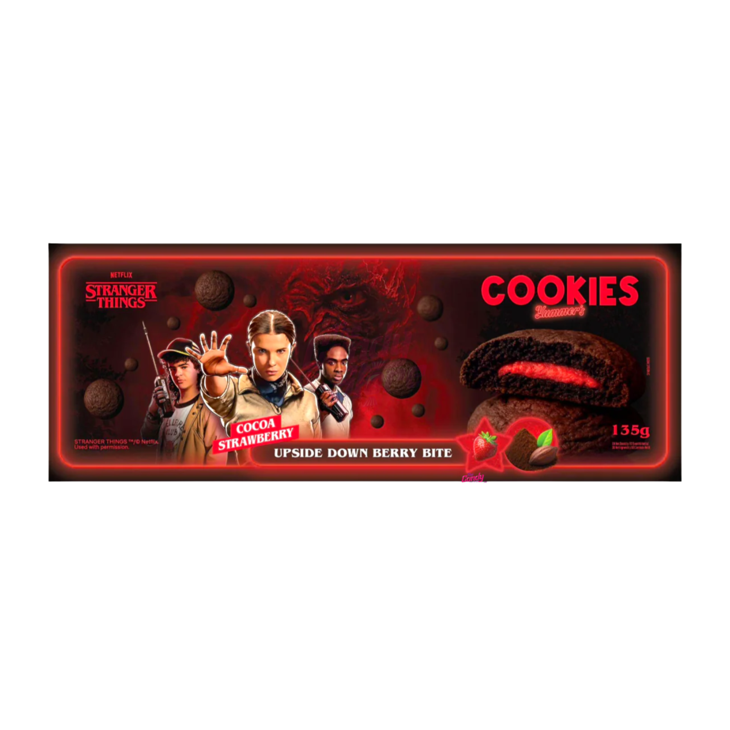 Zucchero, farina di frumento arricchita (farina di frumento, niacina, ferro ridotto, tiamina mononitrato, riboflavina, acido folico), olio di palma, zucchero invertito, olio di soia e/o cocco, cacao trattato con alcali, destrosio, olio di palmisto e/o palma idrogenato, latte scremato in polvere, fibra di mais solubile, amido di mais, cacao, siero di latte in polvere, agenti lievitanti (bicarbonato di sodio, fosfato di ammonio), sale, lecitina di soia, aromi naturali e artificiali, colorante Rosso 40 Lake, caramello, acido citrico. Allergeni: latte, frumento, soia.